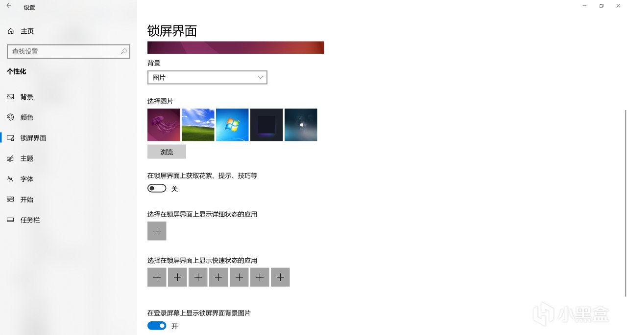 打開Windows設置(Win+i)-->個性化-->鎖屏界面,按照圖中方式,將開關關閉,應用全部置空