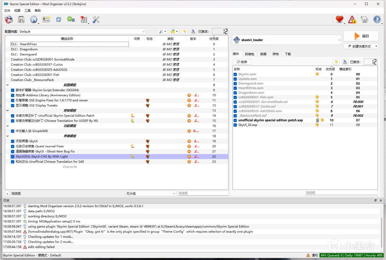 根據需求安裝:Unofficial Skyrim Special Edition Patch(N網尾號:266,漢化尾號:139151)