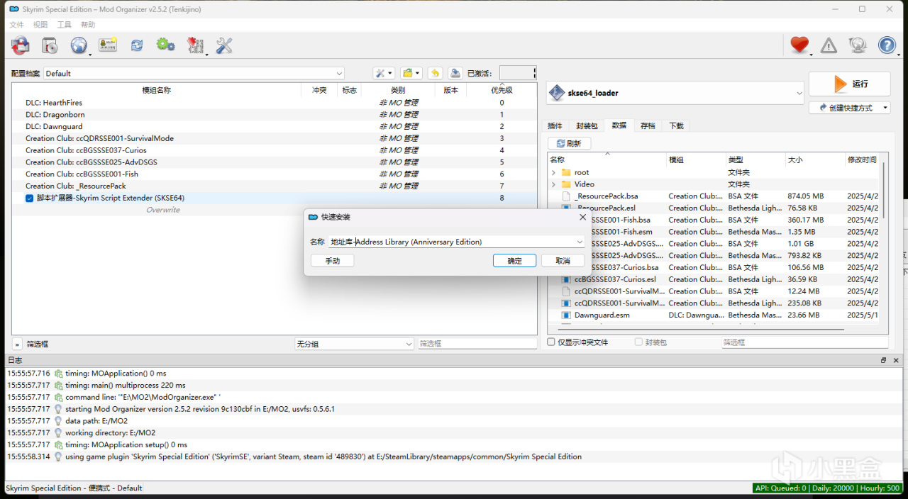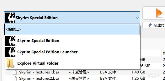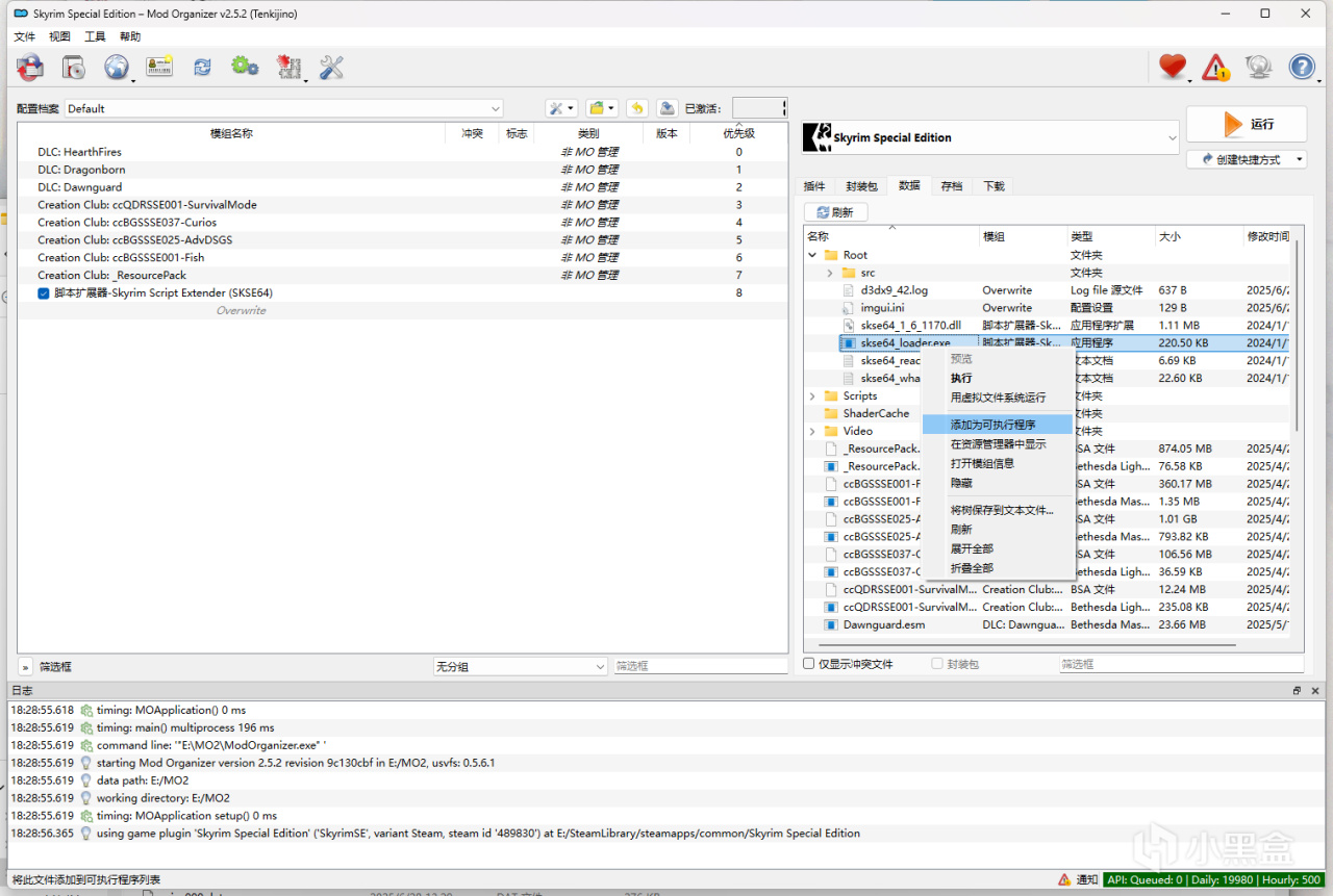 回到MO2,將其打上勾表示啓用該模組,而後在右側的數據中找到skse64_loader.exe並將其添加爲可執行文件即可。