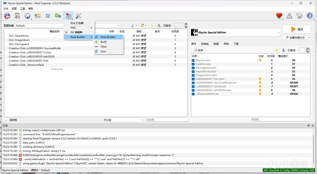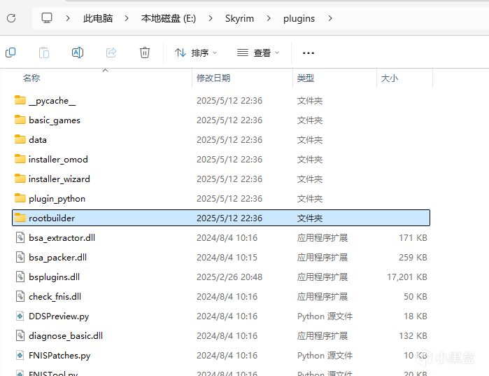 這裏簡單說明一下Root Builder插件的識別路徑,位於root目錄下的文件會被插件連接至遊戲根目錄,對於任何需要放置在遊戲根目錄下的模組都需要在MO2中的模組文件夾下建立一個名爲root的文件夾,這樣它就可以把相關文件挪至本體,但所有置於Data目錄的文件則不需要,因爲MO2本身就相當於Data目錄。之後介紹的模組存在類似操作的就不再重複說明了。