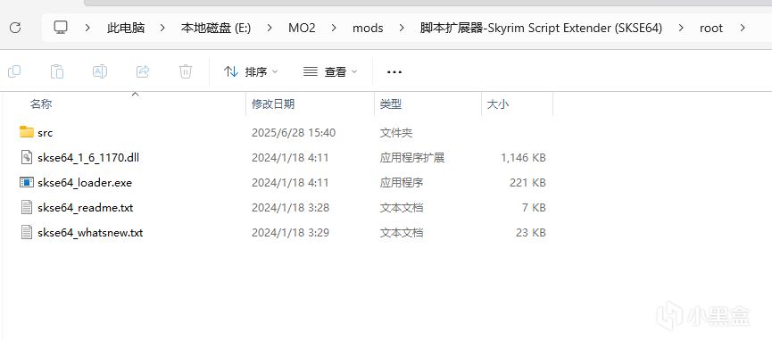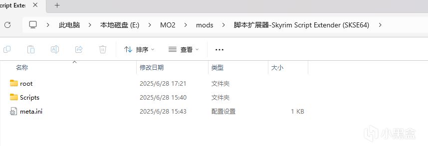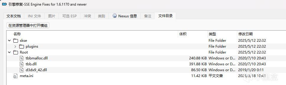 而後右鍵在資源管理器中打開模組,在此處建立一個名爲root的文件夾後將下載好的skse壓縮包中的內容解壓於此,但Data文件夾內的需要放置在模組文件夾的與Root文件夾同目錄下,而非root下。