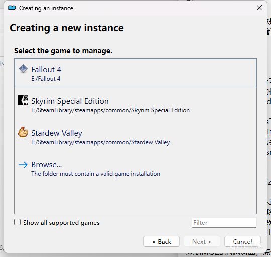 首次啓動後會詢問你建立一個新實例,這裏推薦你創建一個Portable Instance也就是便攜式實例,更加方便管理與打包備份等。之後選擇實例所接管的遊戲,MO2不止可以接管天際的模組,其他部分遊戲也可以進行接管,因爲這篇文章是天際的指南,這裏選天際就好。之後會讓你選擇是否使用檔案獨立的遊戲ini配置文件與存檔,筆者這裏推薦勾選,最後確定實例路徑,和MO2同目錄即可。