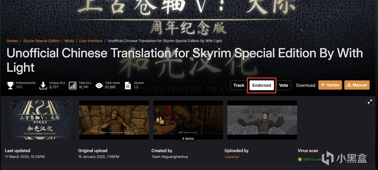 啊對了,下載完模組後如果覺得模組不錯記得回到模組頁面給模組點一個Endorse,表達對模組的支持。