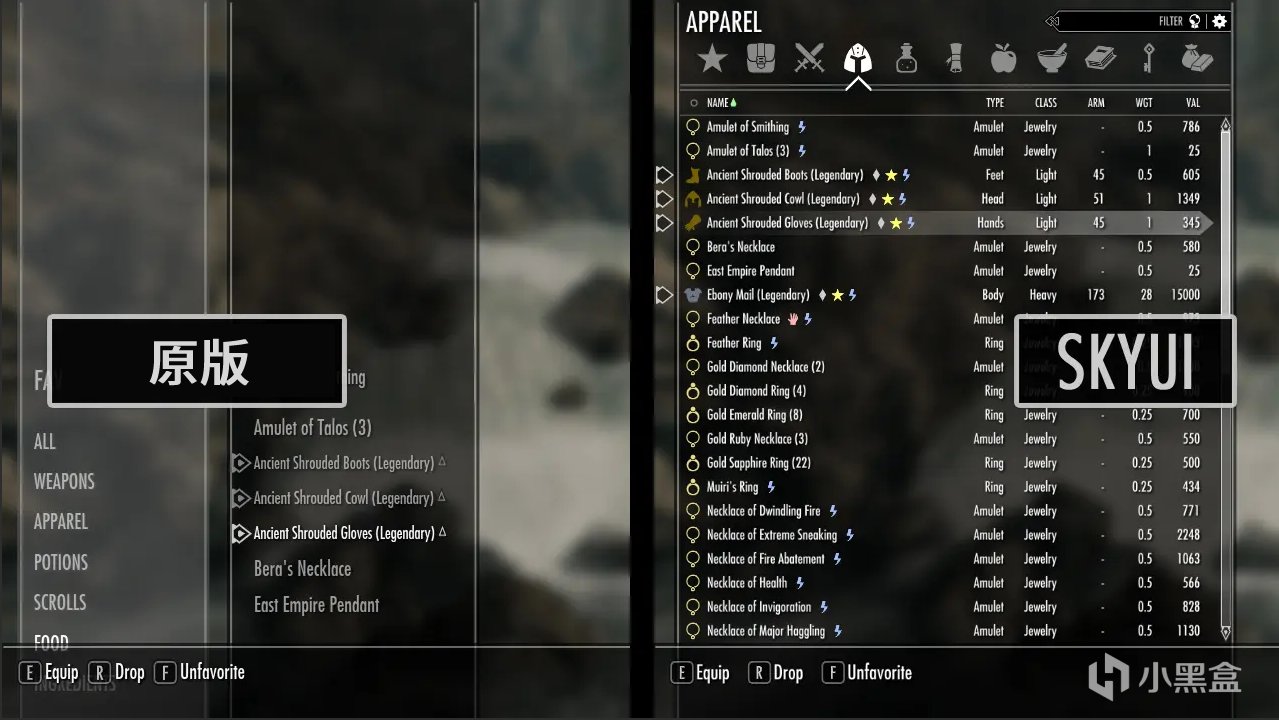 重新設計後的天際UI界面,相比於原版的揹包UI更加直觀明瞭且易用,爲你的天際之旅帶來更舒適的揹包操作體驗。