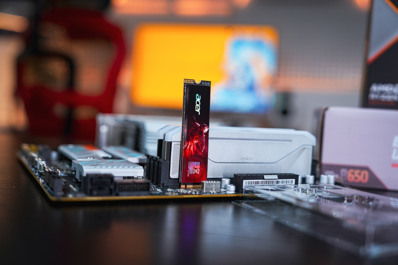 固态搭配的容量上,因为受限于预算也只能暂时选择1Tb容量的搭配了,毕竟B650M是支持双PCIe4.0的,以后还可以进行存储扩容。这次选择的是来自宏碁影骑士擎 PCIe4.0 固态,读(7200MB/s)写(6200 MB/s)速度也算是中规中矩的无缓固态,足以满足日常使用了。