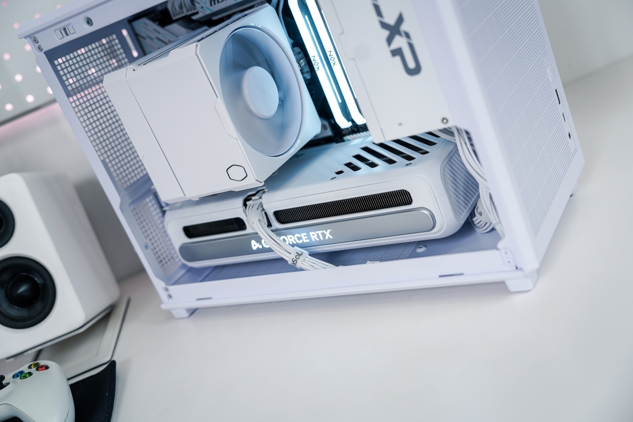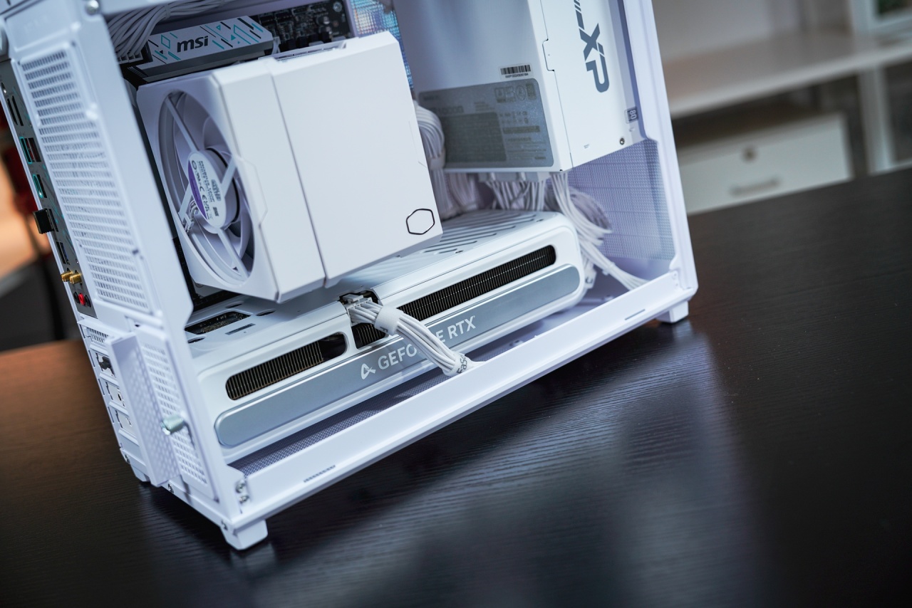 但是在显卡兼容上,显卡限长≤350mm,这样可以大大提升大型显卡的兼容性。特别是类似这次的微星B650M主板显卡插槽下沉的设计,只能放弃底部安装散热风扇作为辅助的想法了。要是常规的显卡插槽的话,底部是可以安装2组12CM风扇作为散热辅助的。