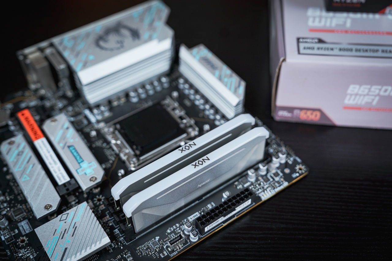 内存方面是满足性能的前提下求稳,又想有不俗的低延迟性能但是对于不善于超频的玩家来说,开启预设的EXPO内存超频是最稳妥的,选择主流的6000 C28内存也是较为最快捷获取低延迟内存性能的搭配方式。内存条采用全银色散热马甲设计,虽然顶端带有RGB灯条,但是内存高度控制在44MM,特别是对于双塔式甚至是下压散热兼容是非常友好的,单条内存容量为16GB,两条组成16G×2的双通道套装,总容量为32GB。从时序CL28-48-48-96来看,宇瞻采用的比较宽松的时序控制来换取稳定性,要是对于这个时序不满意的话,应该还可以进行手动设置更低的时序来获得更低的延迟表现。