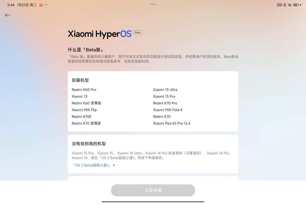系統需要在澎湃OS2運行,所以首先把小米OS系統升級到OS2的最新版,然後到小米社區申請內測。