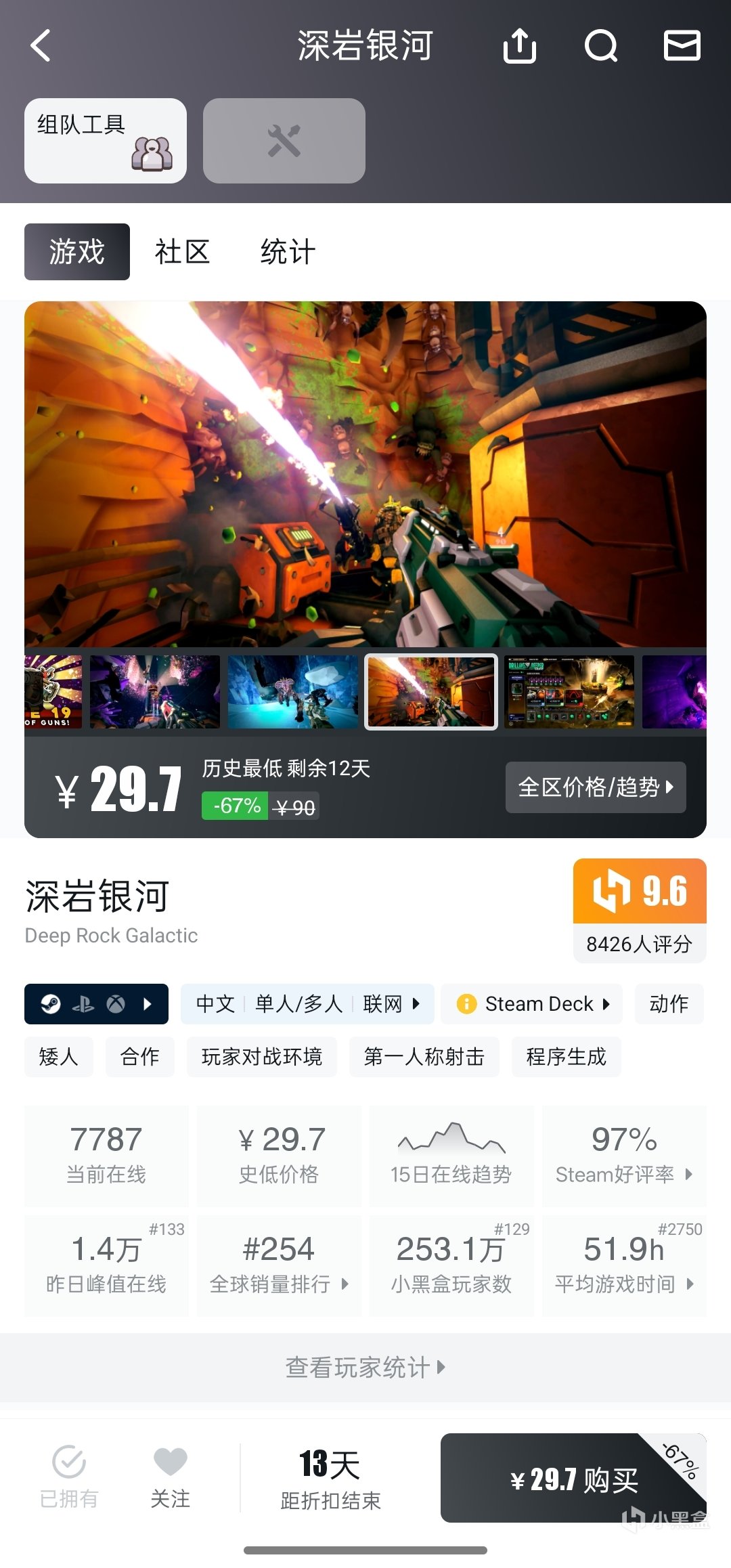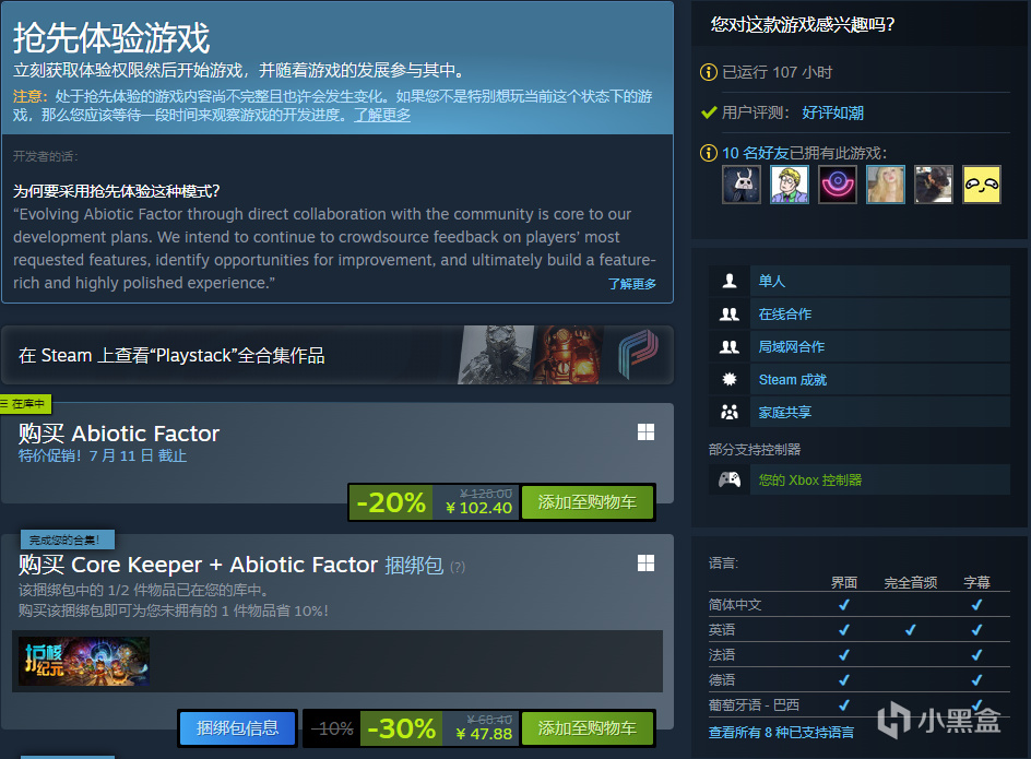 一款合作生存製作類遊戲,支持多人聯機,和朋友一起玩很有意思(可以坑隊友),戰鬥難度不是很高,這是永漲後的第一次折扣,價格遠不如之前但是目前還有機會以五六十元左右購入。