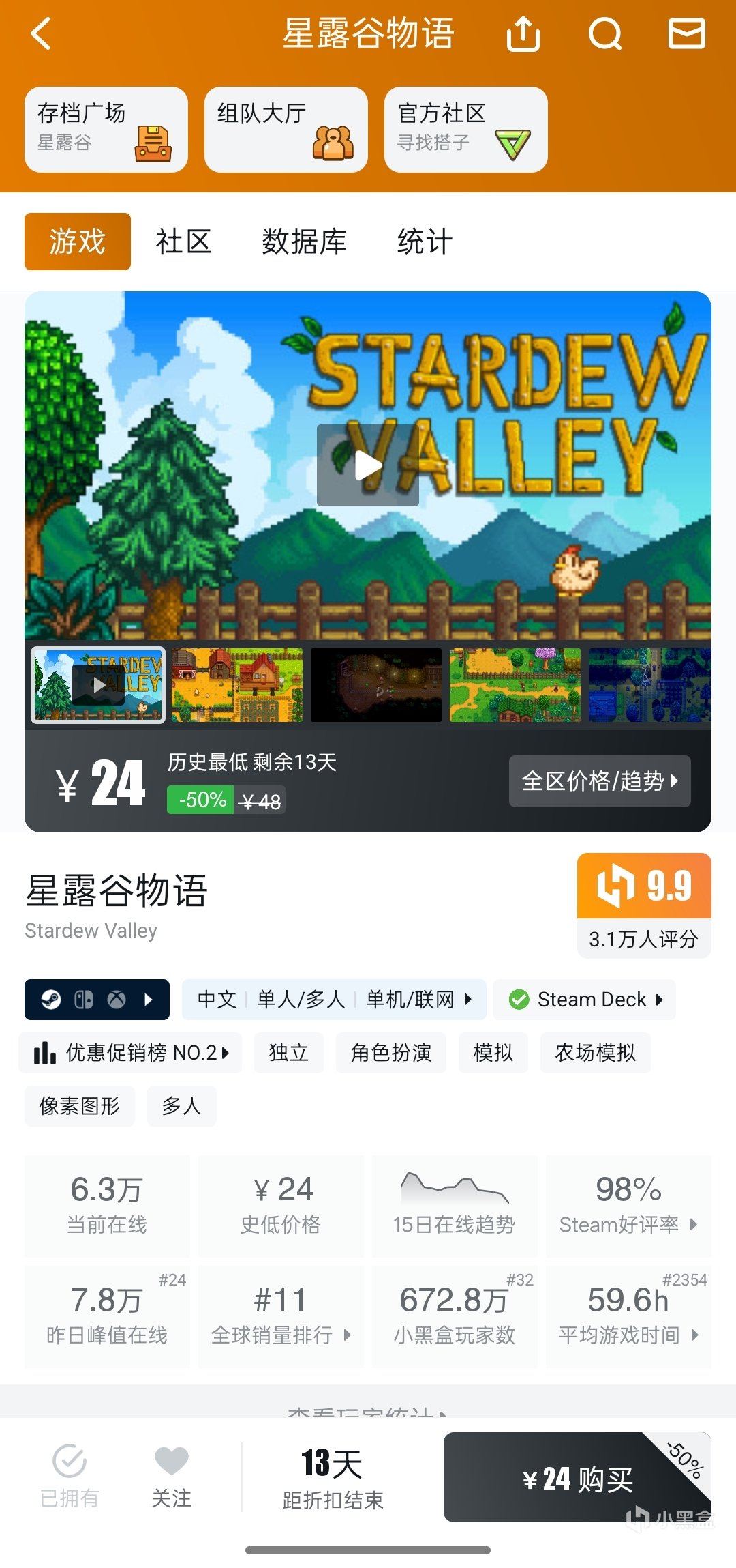 全球種田模擬經營排名第一,無需多言,目前是5折平史低。