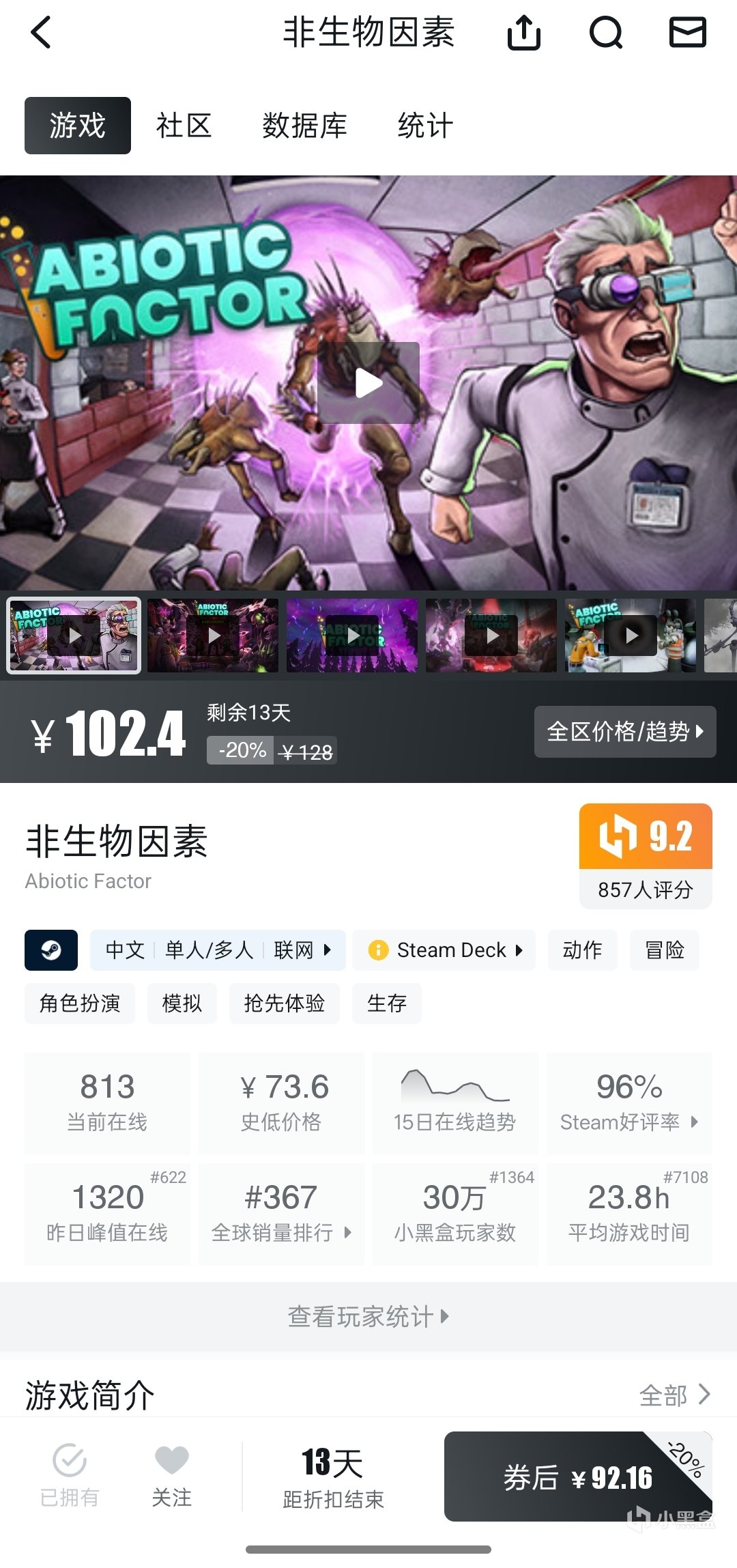 生存建造三巨頭之一,神作無需多言,衝就完了,永漲後的平史低21,永漲前爲18
