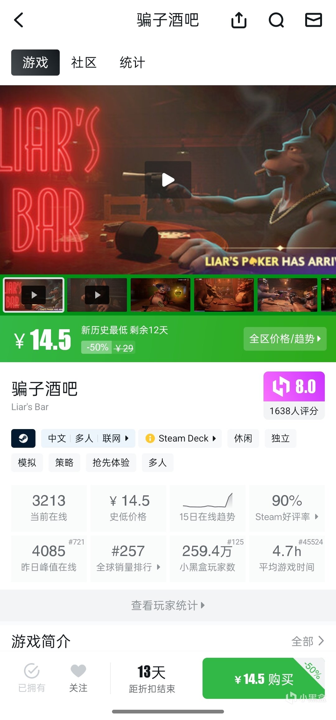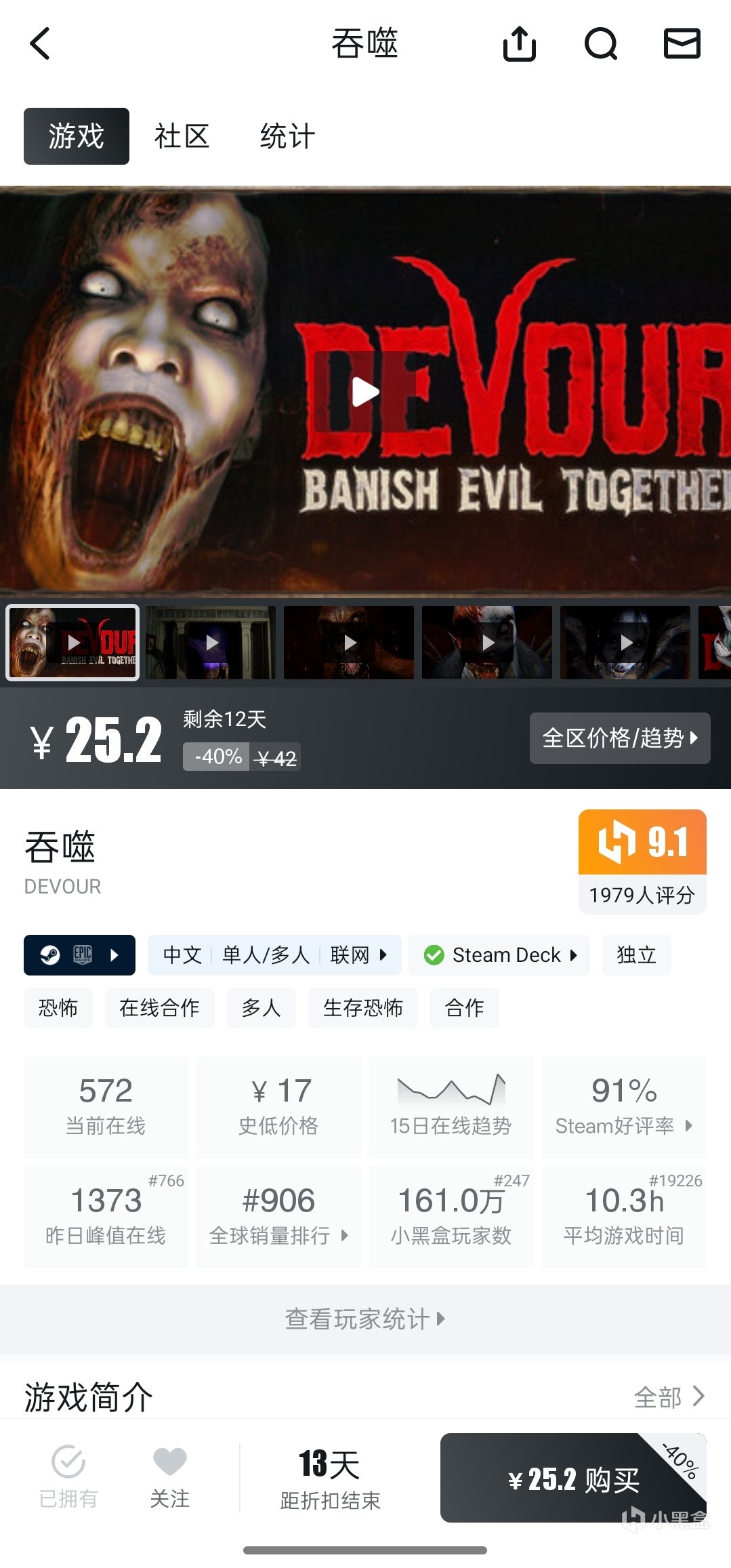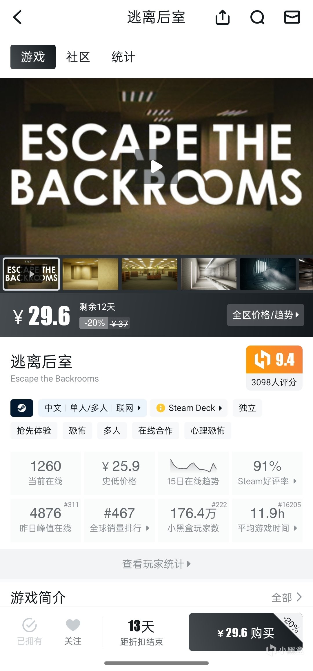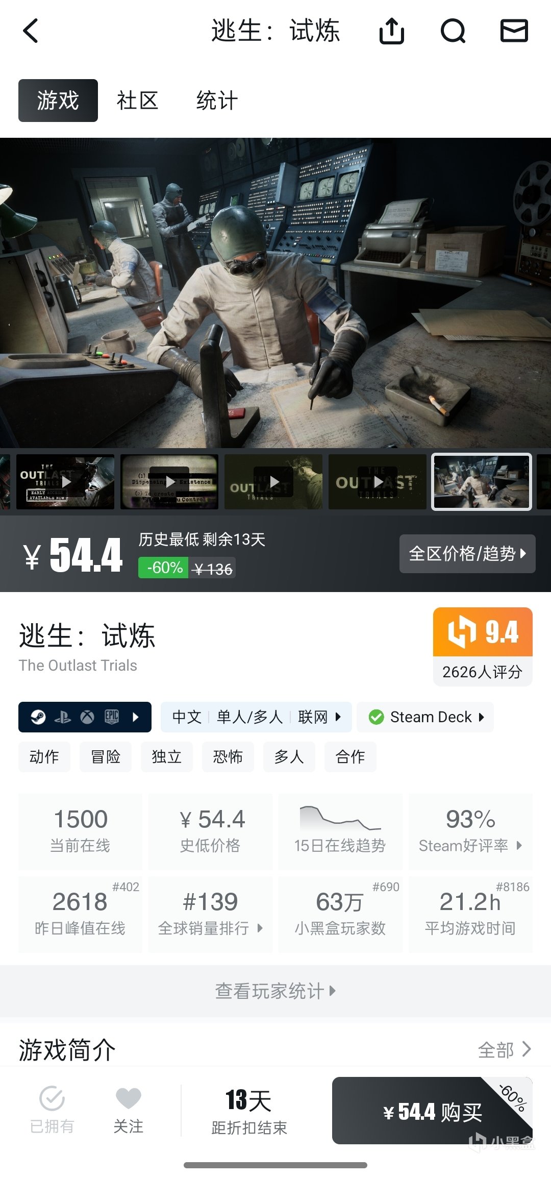 一款多人聯機恐怖遊戲,適合和朋友一起玩,俗話說得好,你不需要跑的比鬼快,你只需要跑的比隊友快就行,永漲後的史低價,永漲前史低是17。