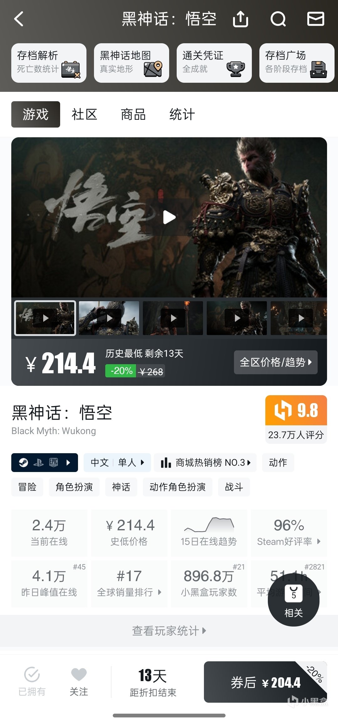 國產3A大作,質量無需多言,發售近一年來首次折扣,聽說今年8月20號可能會推出DLC(疊個甲,貓也是道聽途說,不保真)。