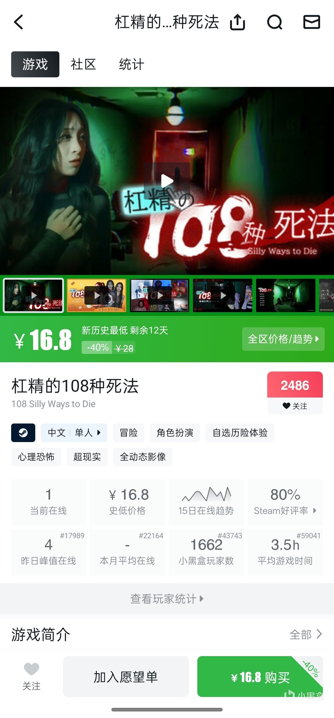 一款恐怖遊戲互動影遊,實際上並不恐怖,相反有點無厘頭,害怕恐怖遊戲可以先直面這種並不恐怖的“恐怖”。當前新史低