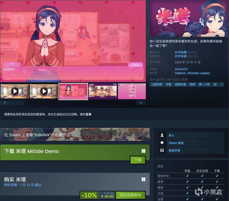 直面恐遊,就不得不提一下大家的賽博老婆之一——《米塔》了,就一個評價,好色和膽小,總歸是要治好一個的。目前平史低
