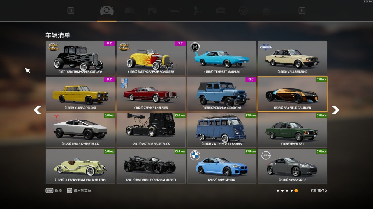 国产车:屈指可数,哪怕是加上创意工坊。可能是受版权限制。在国产车风靡全球的今天,期待续作能有更多国产车吧。