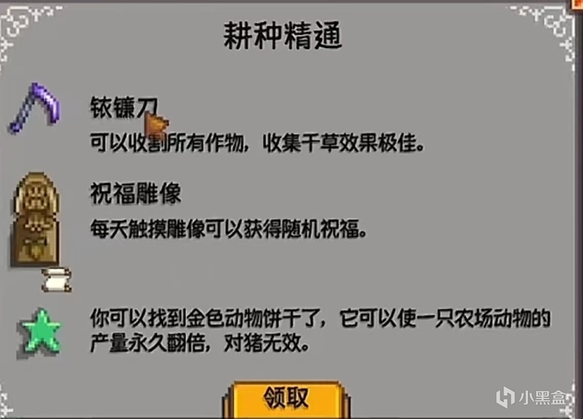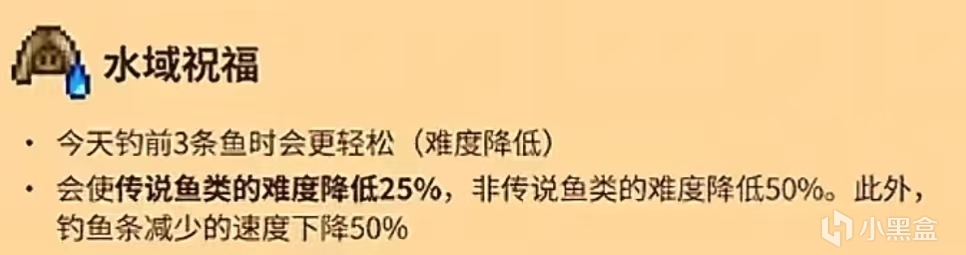 耕種精通可以讓我們解鎖祝福雕像,每天隨機獲得一種增益,其中的水域祝福就可以讓我們每天釣得前三條魚的難度大大下降,不過有點喫運氣,只能算是沒辦法的辦法了。