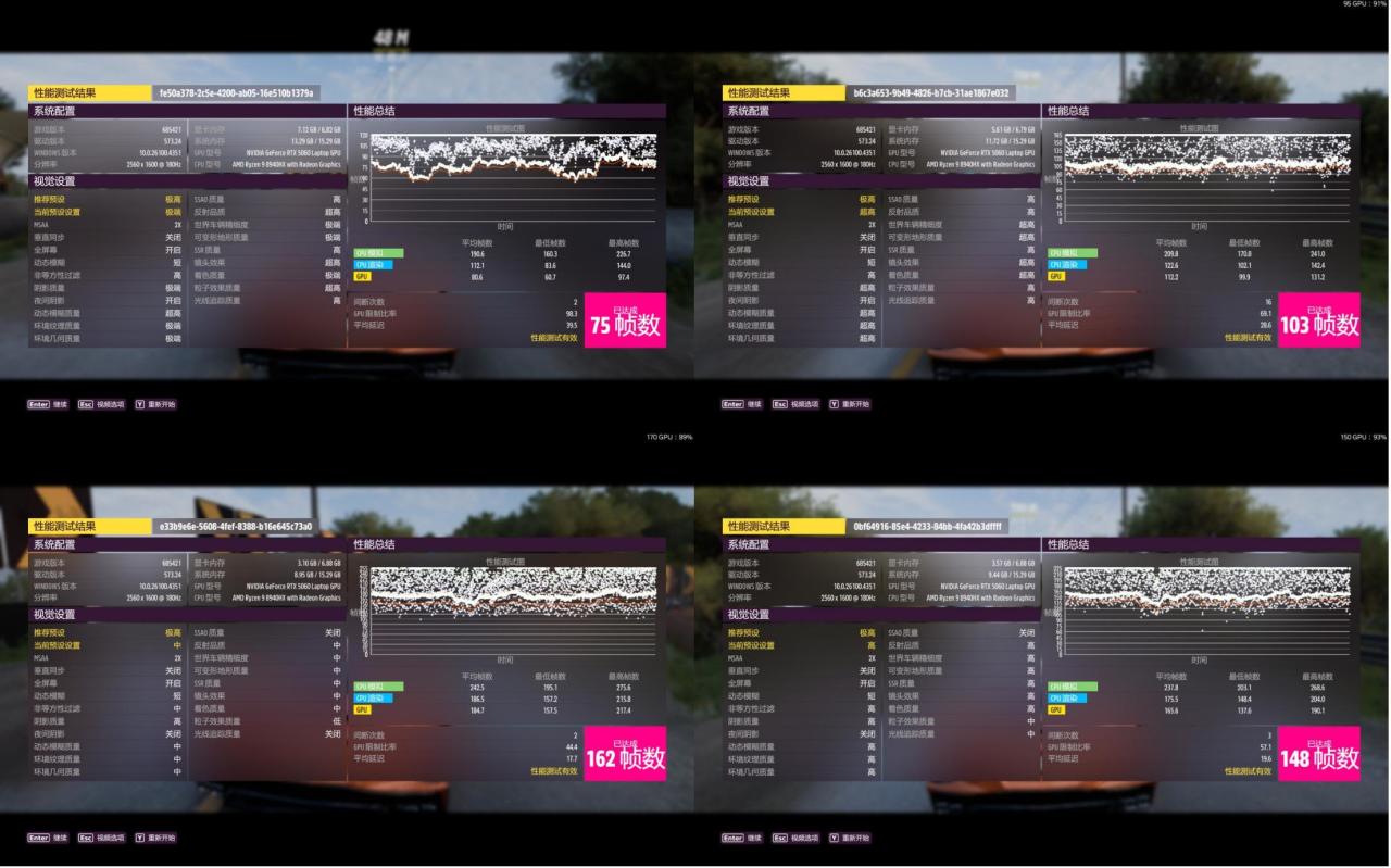 极端画质平均75帧,主要是显卡成为瓶颈。