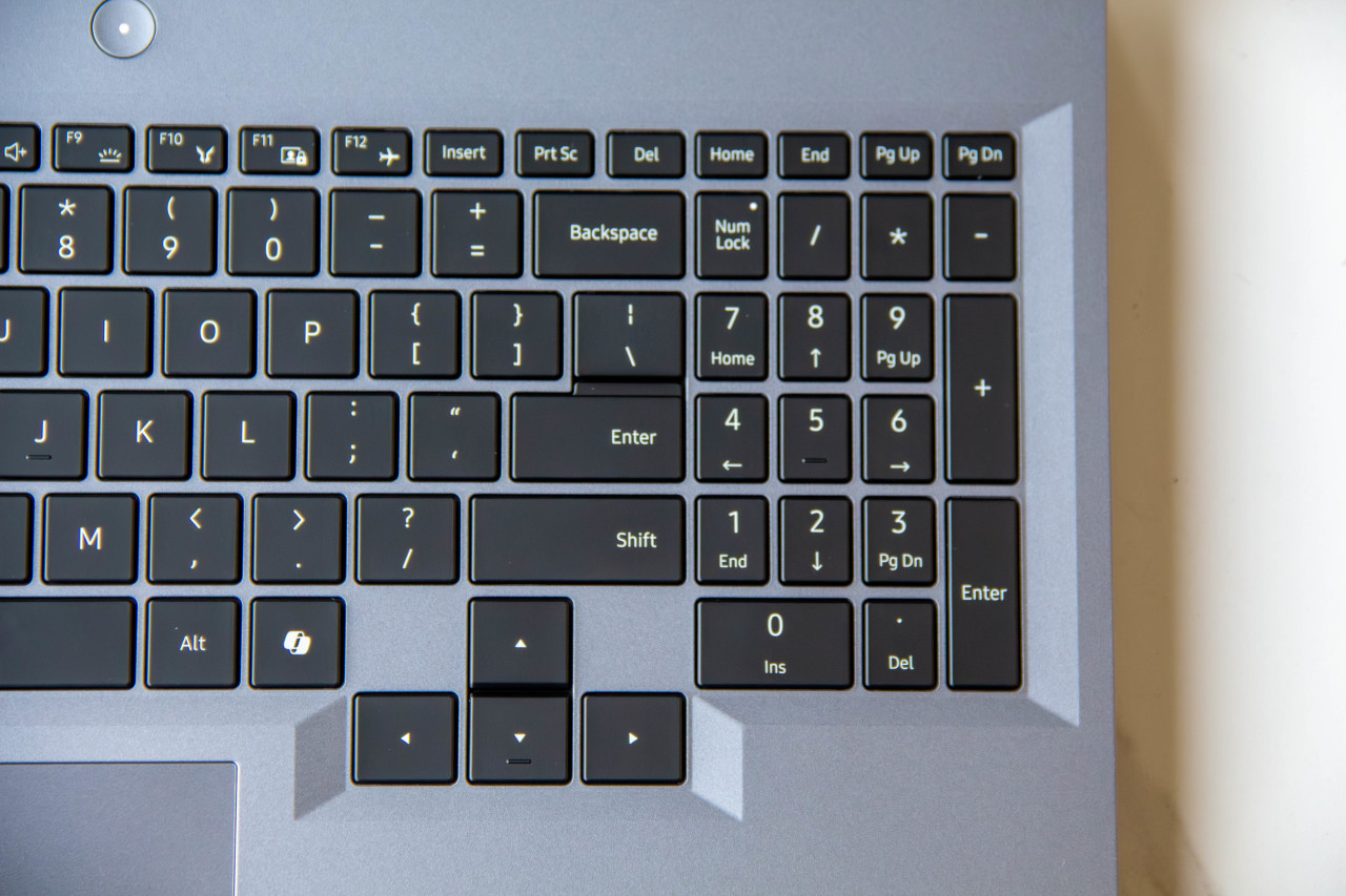 在键盘布局方面,依然延续拯救者的风格,独立数字小键盘和全尺寸方向键。1.5mm键程没那么舒服,但是依然能用。