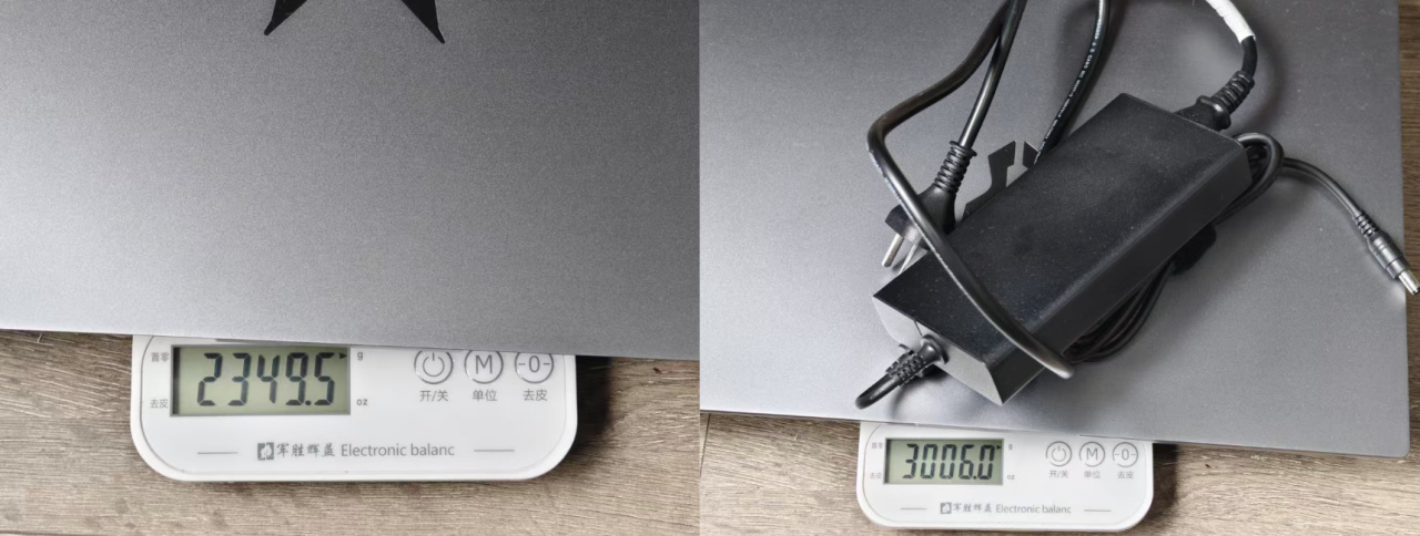 裸机重量在2.5kg以内还算不错,再加上240W的电源适配器,旅行重量3kg,也还不错