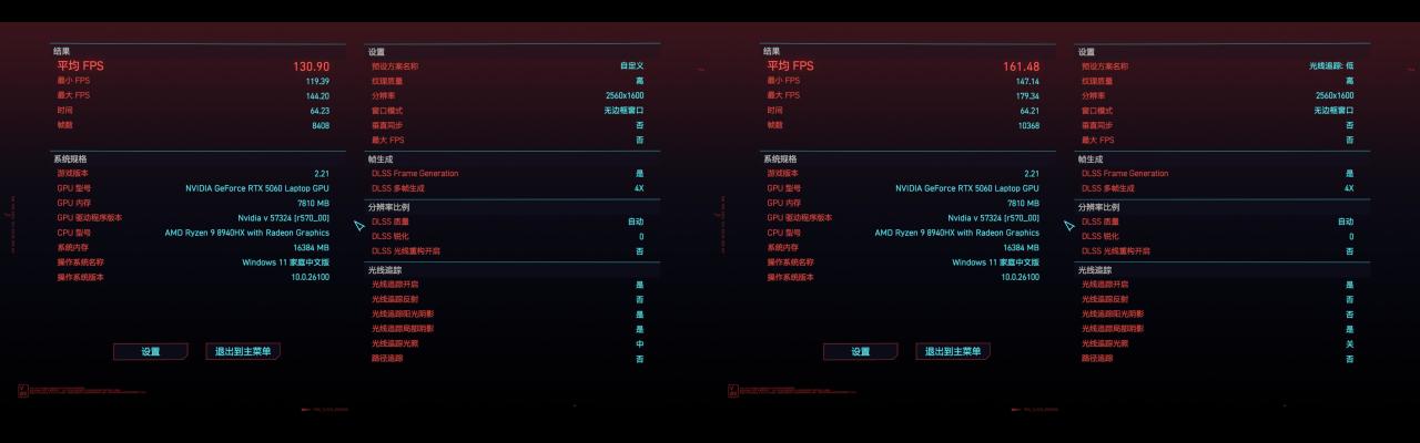光追中画质130帧,光追低画质161帧。
