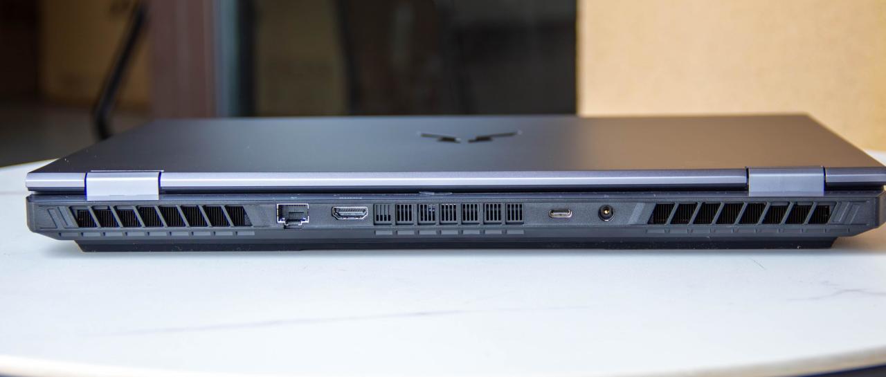功能性的接口主要在屁股后面,RJ45,HDMI2.1FRL,全功能 C口(支持数据传输,DP独显直连,100W的PD输入)然后还有一个DC电源接口。