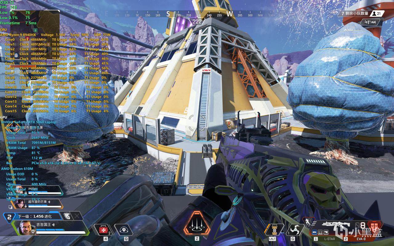 Apex比较有意思的是帧数不低,但是键盘布局不太合适滑铲跳,除非改键。建议买这个机器玩Apex的好兄弟们,外接机械键盘是最舒服的。