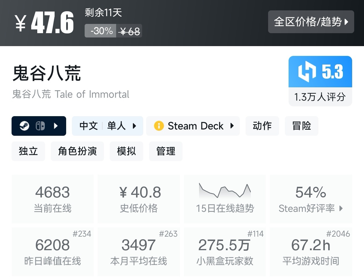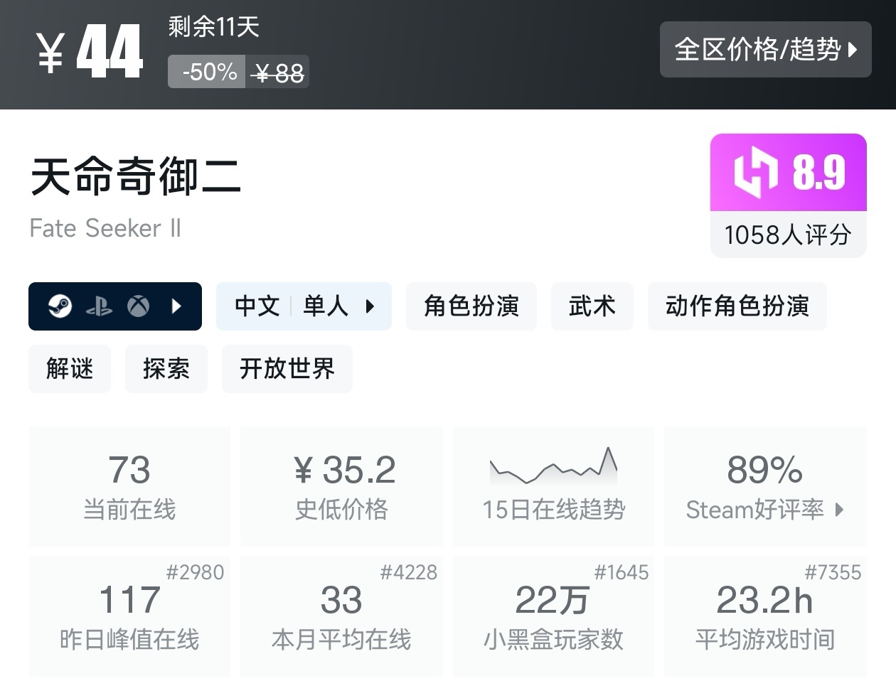 大家好,在最近,这不是夏促已经到了,当然,这期帖子,如你所见,是一期关于国产游戏的折扣汇总,国产游戏从去年黑猴发售后,就呈现一种强有力的发展,可以说,国产游戏已经逐渐崛起,并迅猛爆发出一款又一款作品,我将为各位进行一个汇总,希望我的汇总,能够帮助各位盒友挑选心仪的游戏。