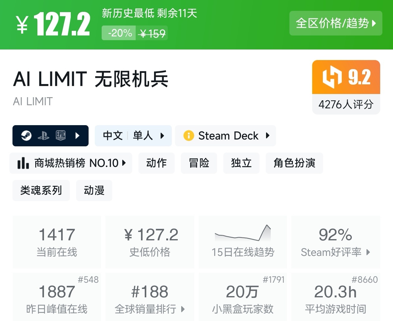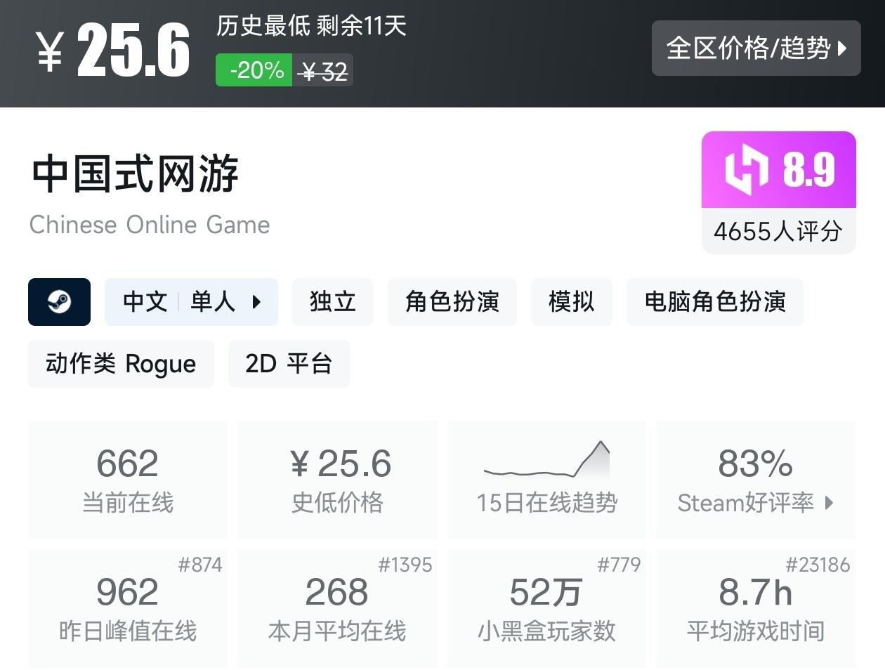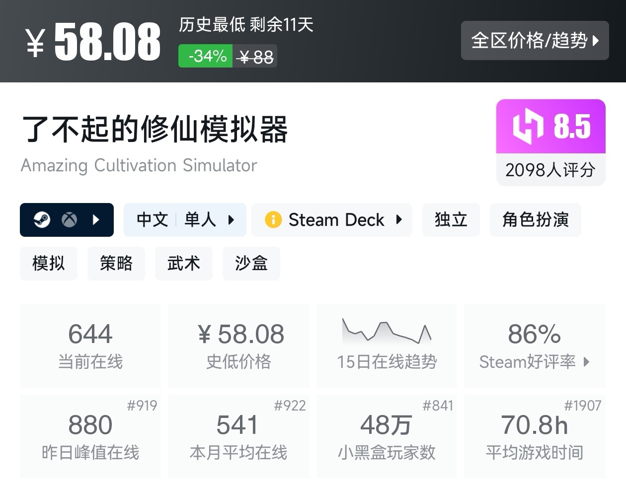 以上就是这期的折扣汇总,几乎涵盖了所有的近期打折的国产游戏,这些足足用了我一个小时的时间。