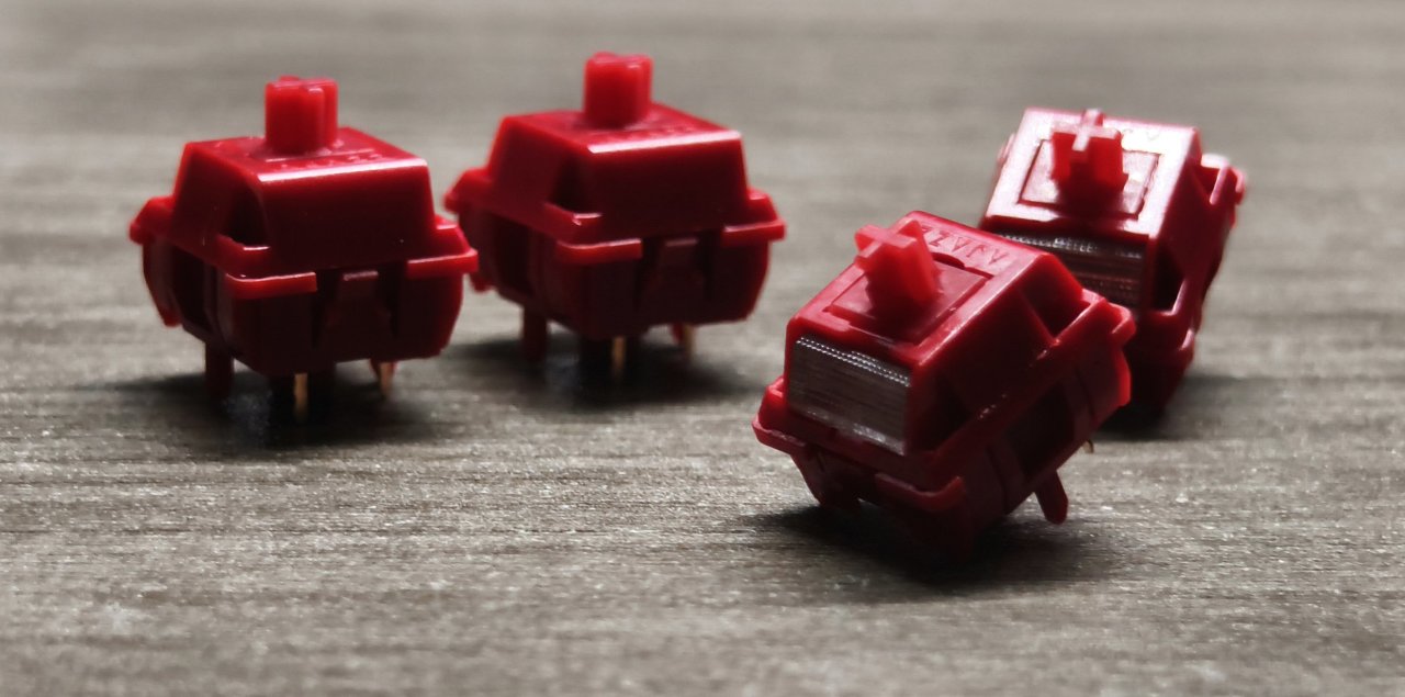我手中的高配用的是火龍果軸,你可以看到他整體不管是上蓋也好還是底殼也好,甚至是軸心全都是紅色的,唯一不同的顏色就是它的導光柱了。