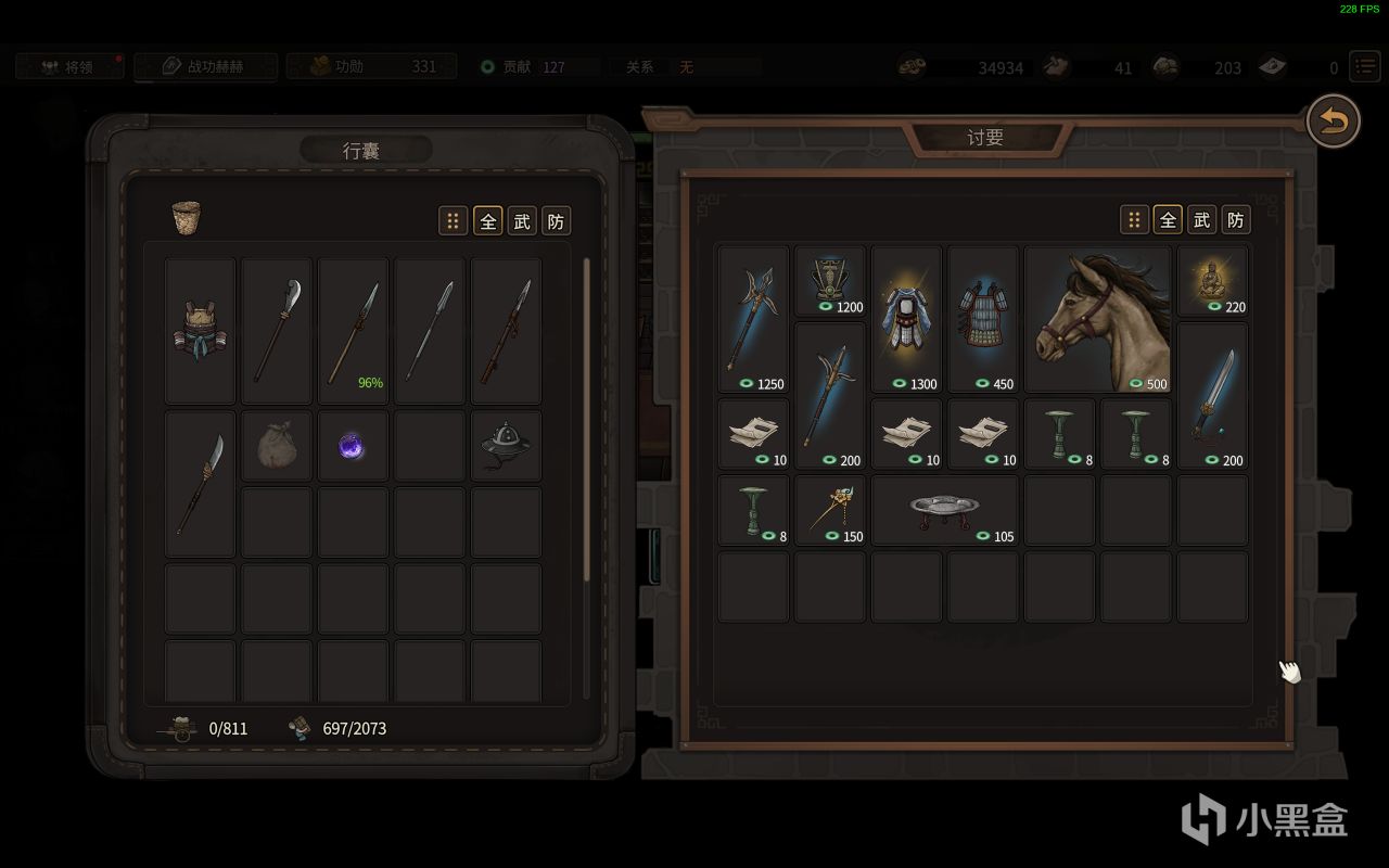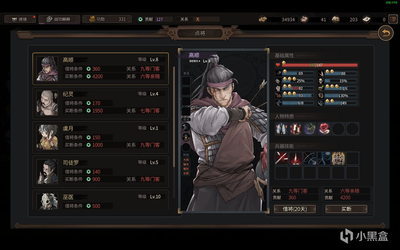 只有贡献度够了,才可以【点将】并从【武库】里拿装备