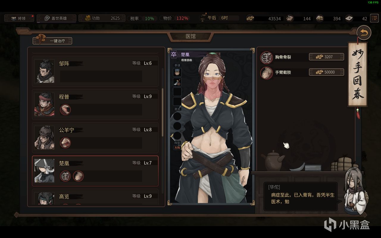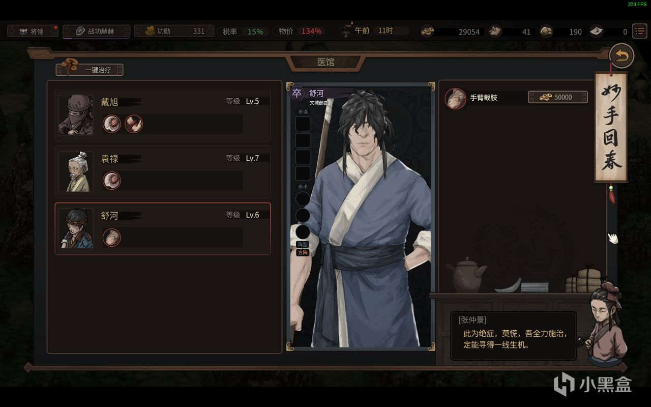 在完成这部分剧情线后,回到洛阳就可以看到张仲景了。此时我们可以花费五万来治疗一处永久伤害(前期这笔钱真的太贵了。。。)