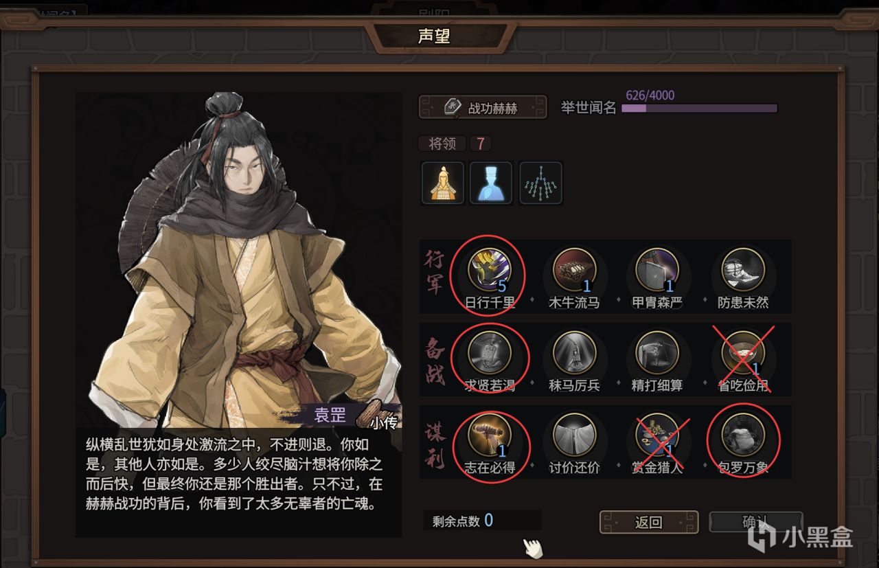 4.角色加点优先级——气力;声望加点优先——日行千里+包罗万象+志在必得+求贤若渴
