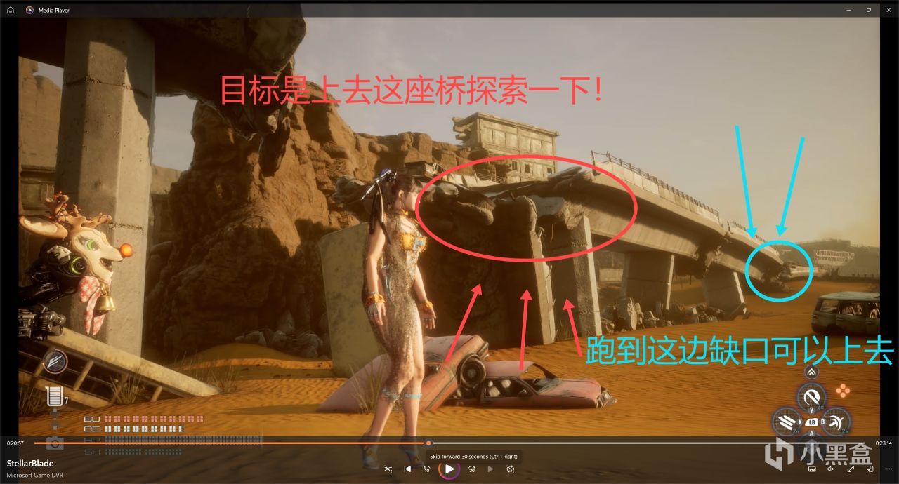 接着我們往回走,這座橋就沒啥東西了,我們從剛剛被我們打下來的那個公交車位置往後面看,在我圖中圈着的位置有一個洞,進去!