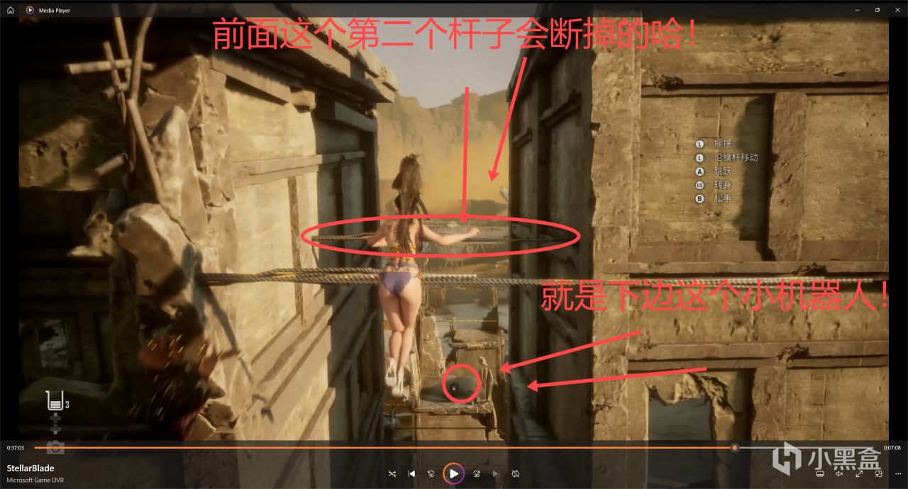 注:圖中第二個杆子會斷,掉下去下面還有一個杆子,所以不要怕!