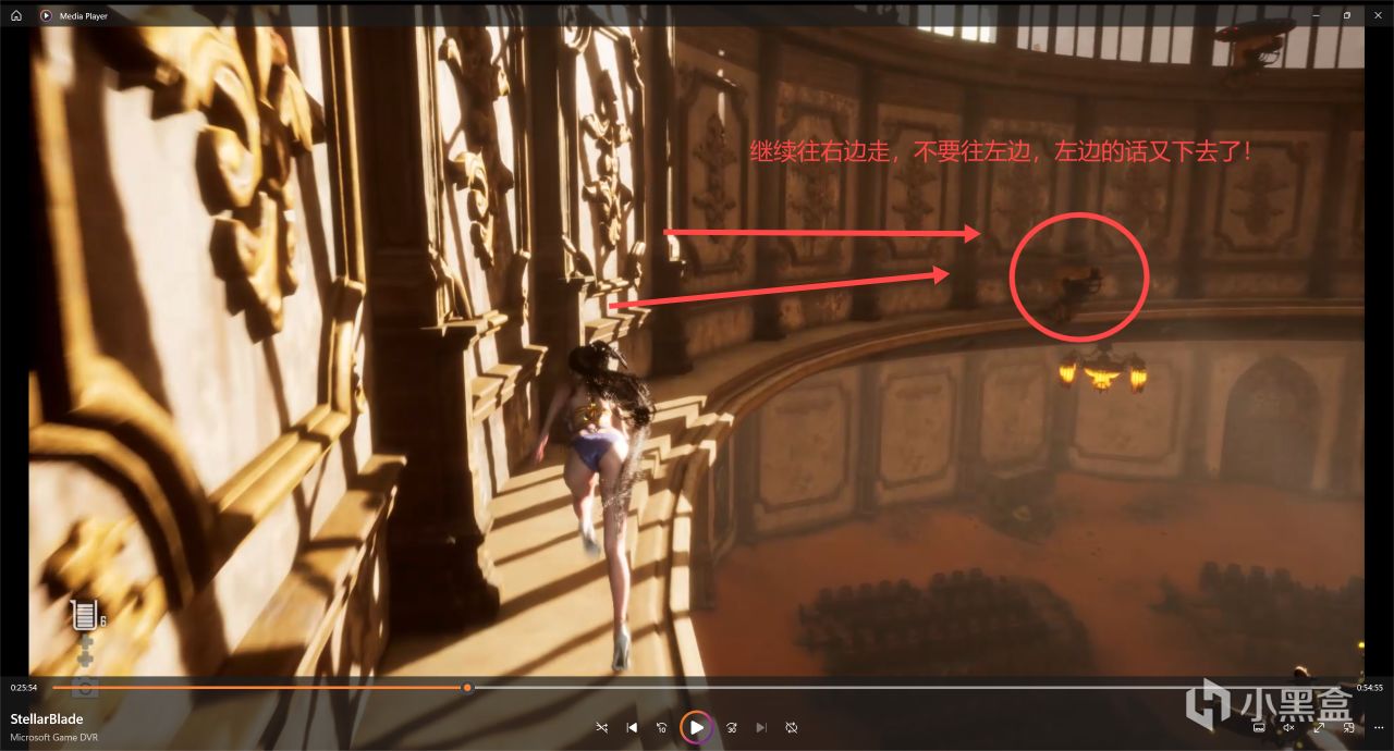 到達前面這個平臺以後還需要跳一個你可能覺得不太可能跳上去的地方,但是實際上是可以跳上去的,一個二段跳+衝刺就可以過去,上去以後就可以拿到服裝:墨色波浪