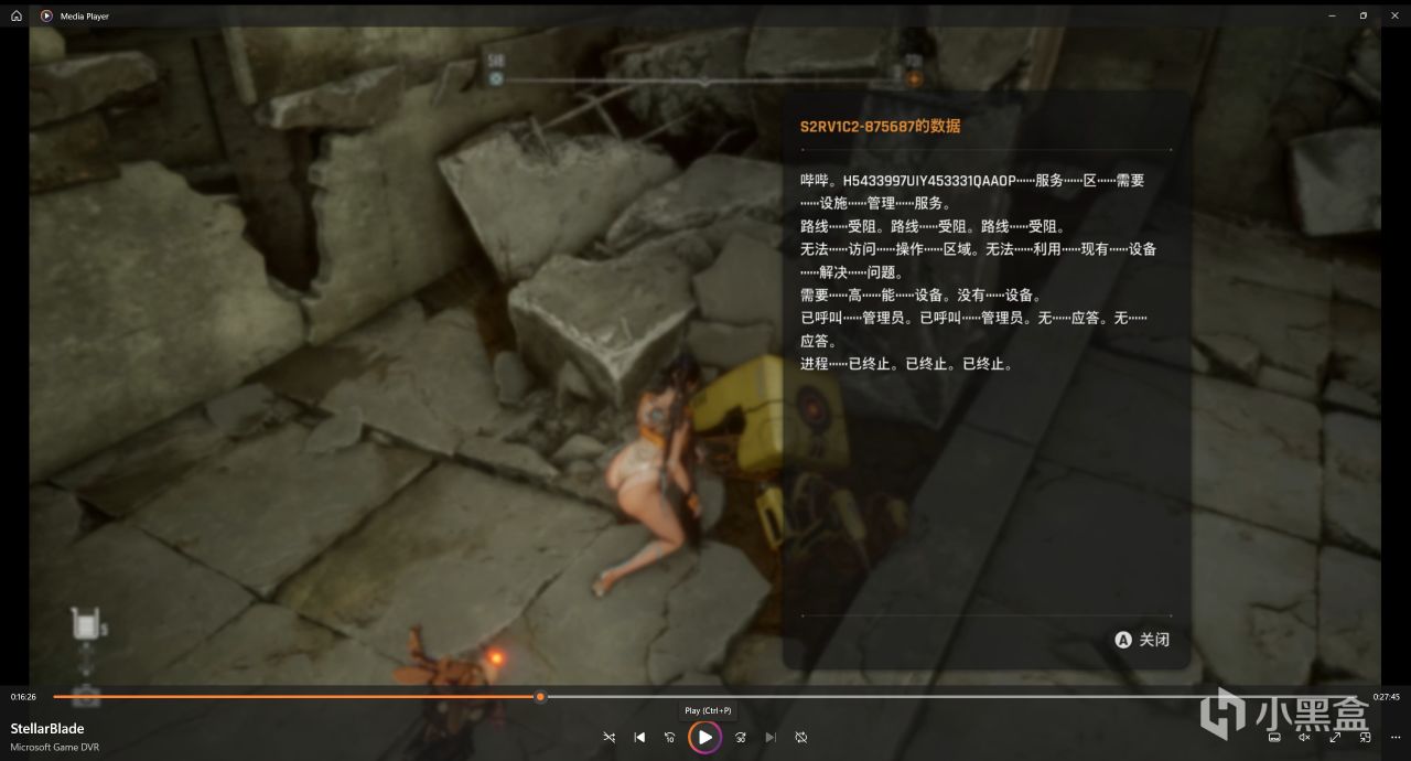 接着這上面這個角落就沒啥東西了 ,我們從頂上下來,回到一開始我們準備進去這塊區域的公交車前面,右邊有一個廢墟,廢墟里面有個小無人機,有一個數據庫S2RV1C2-875687的數據