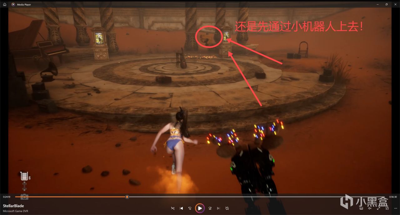 一直往前,下面小機器人打掉!