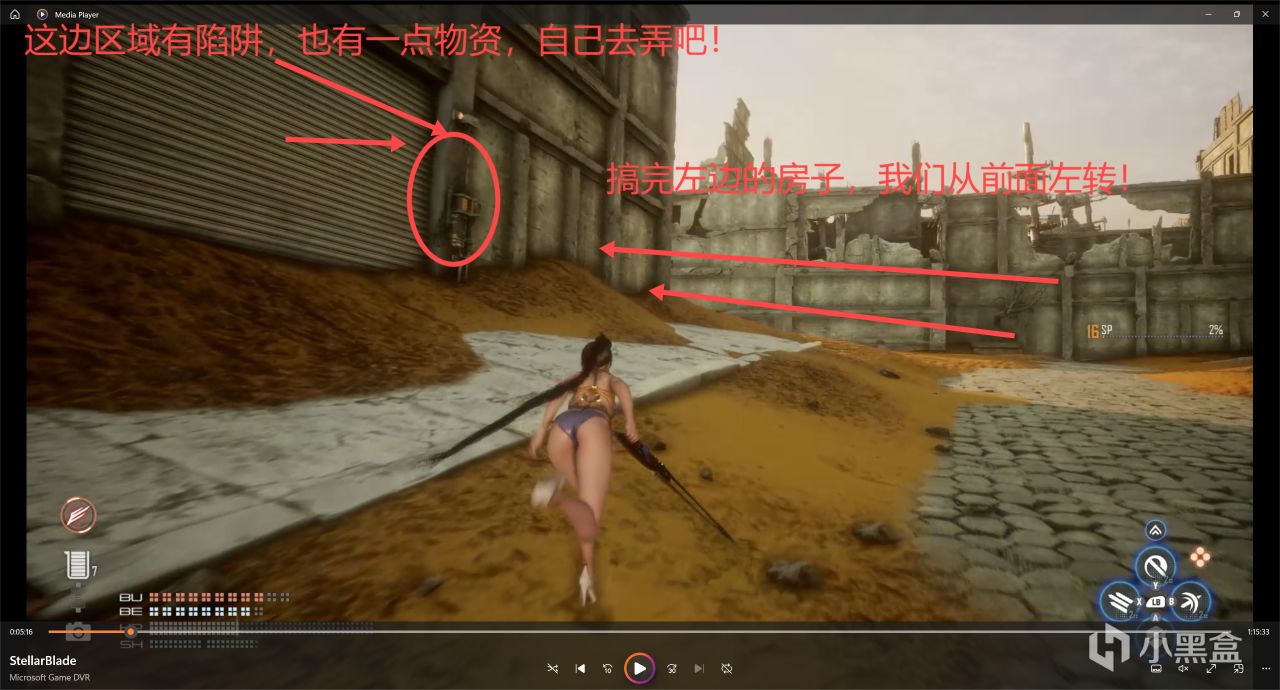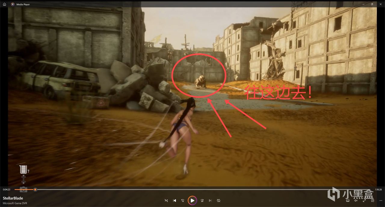 接着在我們剛剛電話亭的左下區域就沒啥東西了,我們往電話亭的右上區域探索,目標是圖中圈圈的廢墟