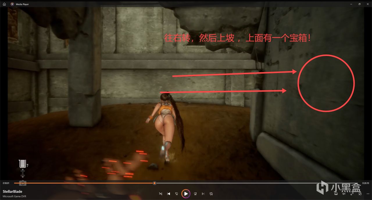 接着我們朝着營地旁邊的我圈起來的廢墟,進去,進去以後右轉然後往上爬,上坡,就可以看到一個寶箱!