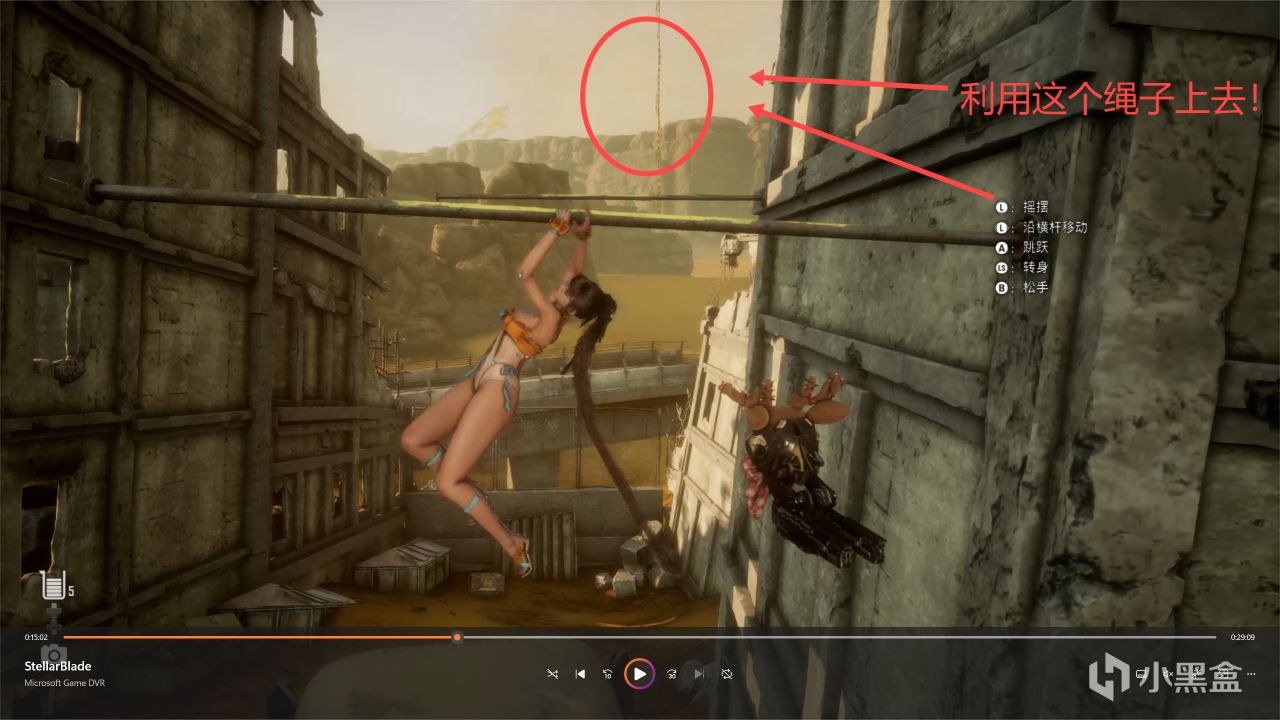 利用前面的繩子上去樓頂!