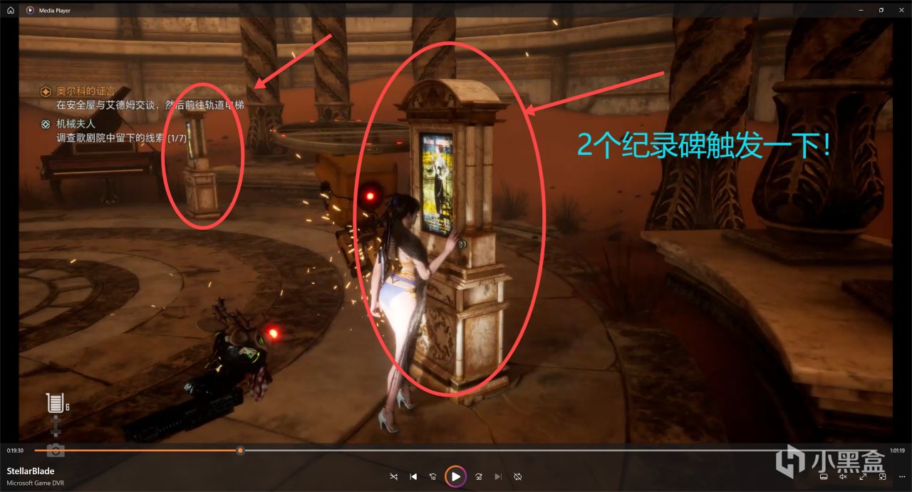 最後兩條線索分別是在觀衆席左右兩邊後面的海報,觸發完就任務結束了,但是我們先不傳送回去哈!
