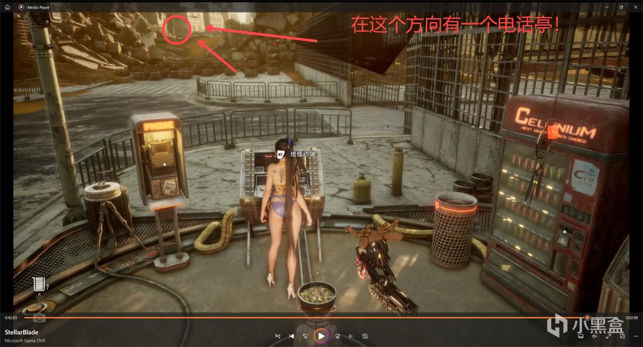 接着我們先從剛剛那邊的區域出來,回到一開始進去這個區域的營地!咱們朝着很多箱子的那個方向走,千萬別踩到箱子,會爆炸!在我圖中圈圈的位置有一個電話亭