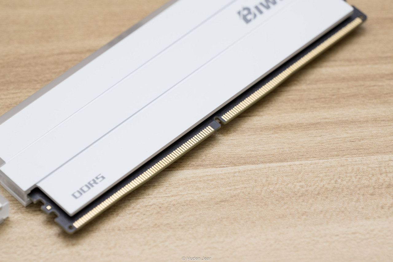 看看内存本体,内存纯白色的马甲看着非常亮眼,材质细腻柔和,摸着手感不错。马甲上的印刷是和内存灯条比较接近的灰色,风格还挺统一的,正反面的图案一样,靠贴纸区分