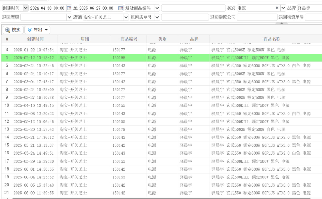 然後再來看一下退貨大概爲21臺,這個時候大家就會說“哇,這故障率有點高了吧”,先別慌,這個ERP表單裏面不全是故障損壞,也有其他原因的退貨: