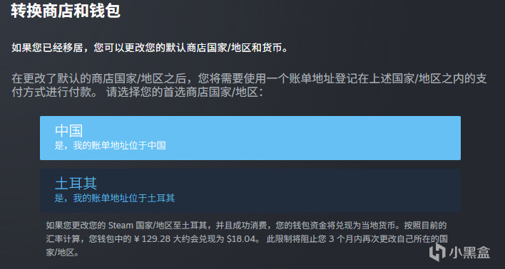 1⃣ 切換加速器到"土區",這邊使用小黑盒加速器進行演示,選擇 Steam商城/社區,加速"土耳其"地區節點即可。