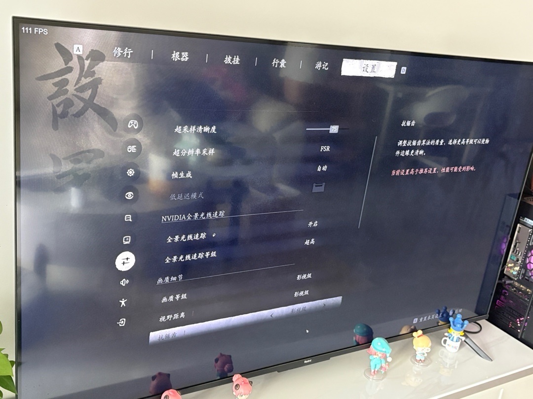 显示器是用了多年的32寸144hz的2k显示器,只能说全无压力,试验的所有游戏,黑猴、霍格沃茨、卡赞、33号远征,所有游戏内通用设置(非发烧友,局外设置、那些不太懂的英文设置有的先不动)全部无脑拉到最高,没有任何一个在显示器的游玩帧率低于一百
