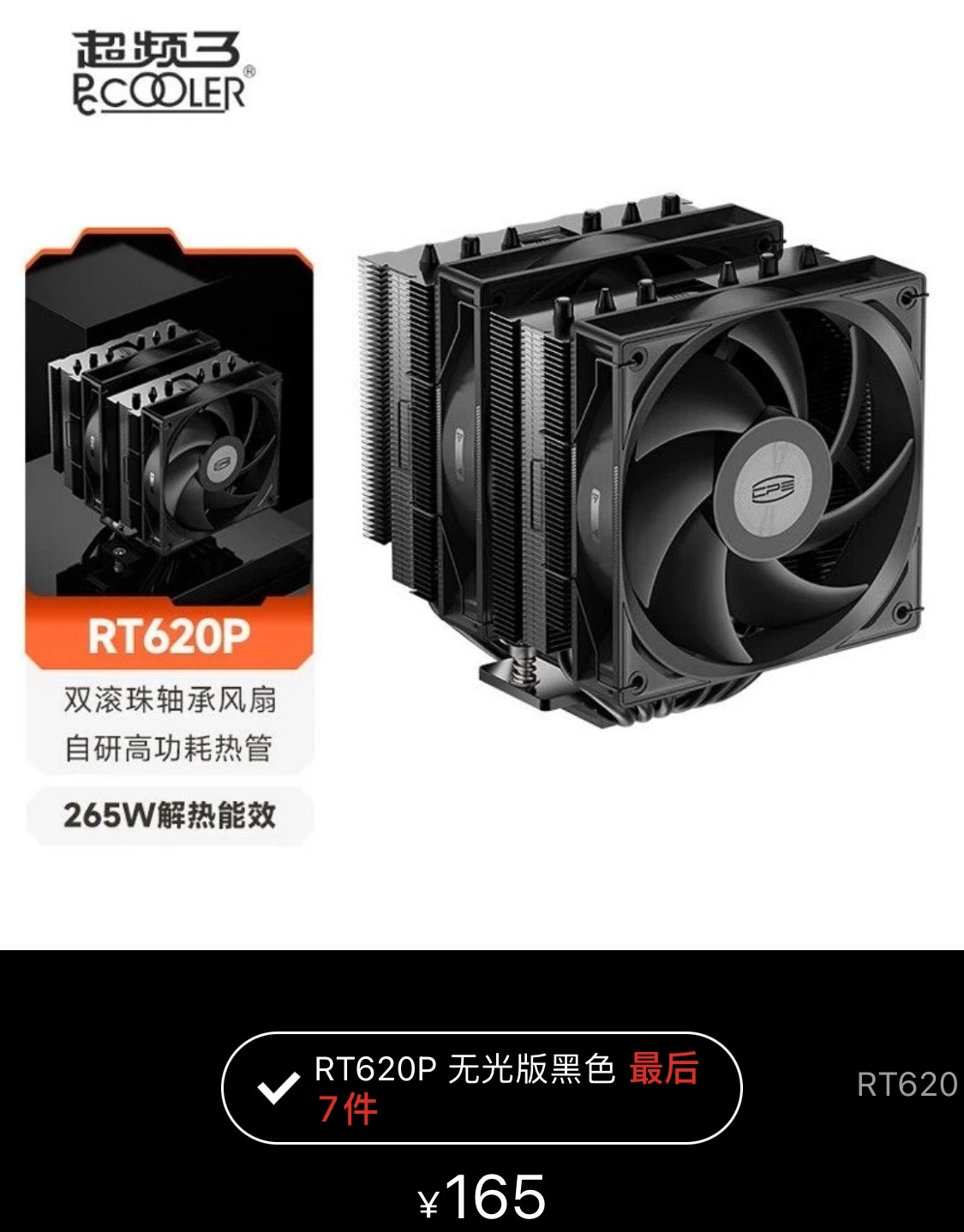 超频三rt620 165元 双12cm风扇双塔六热管镀镍底座 推荐使用cpu:14600kf/265k/5700x/7700/9700x
