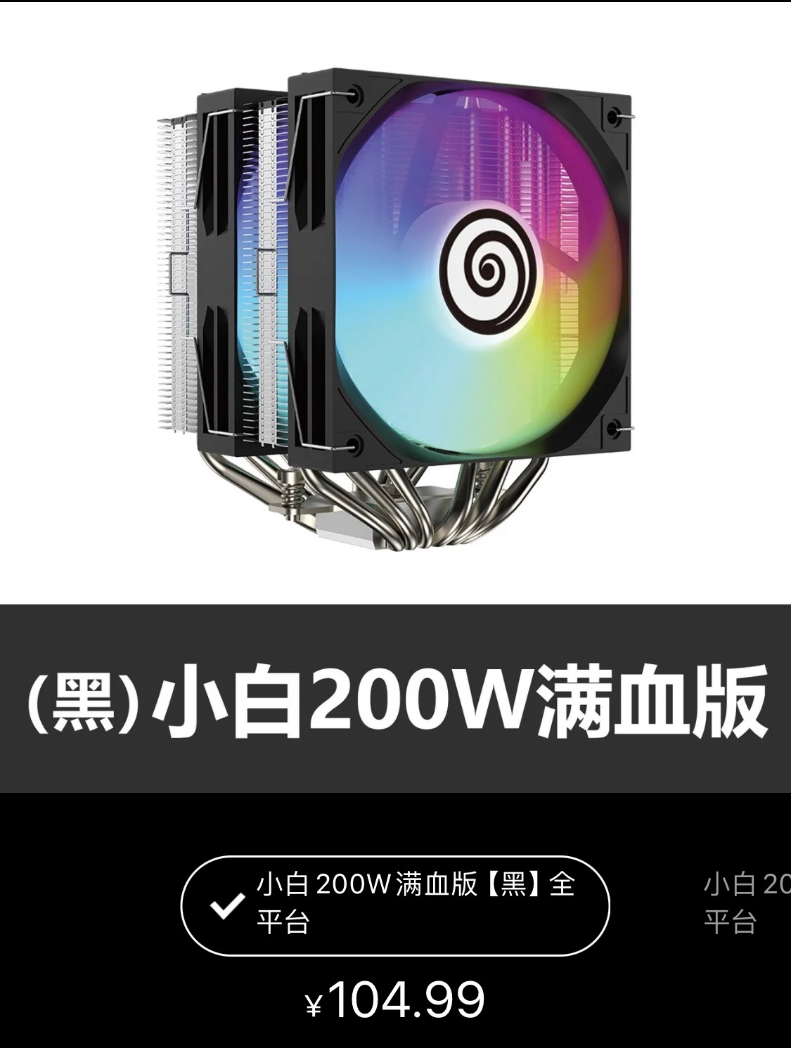 顺子小白200w满血 105元 双12cm风扇双塔六热管直触 避让内存 推荐使用cpu:14600kf/265k/5700x/7700/9800x3d