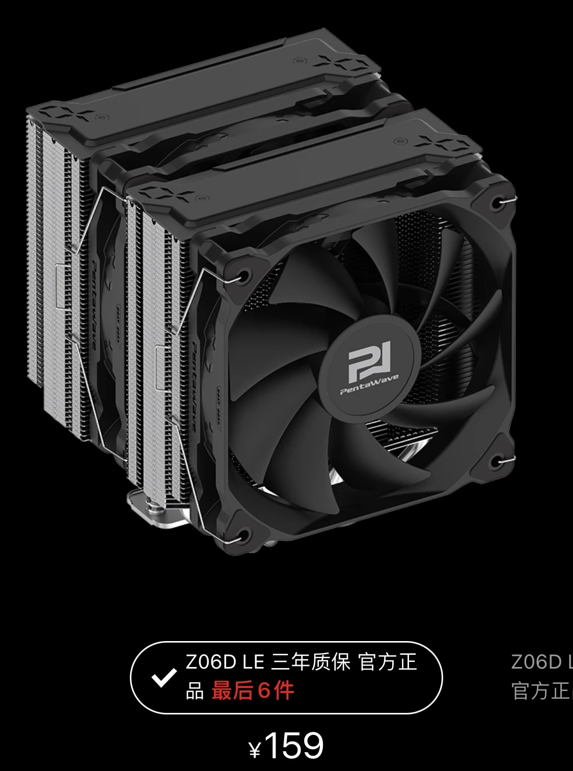 攀升z06d le 159元 双12cm风扇双塔六热管镀镍底座 推荐使用cpu:12600kf/245k/5700x/7700/9700x
